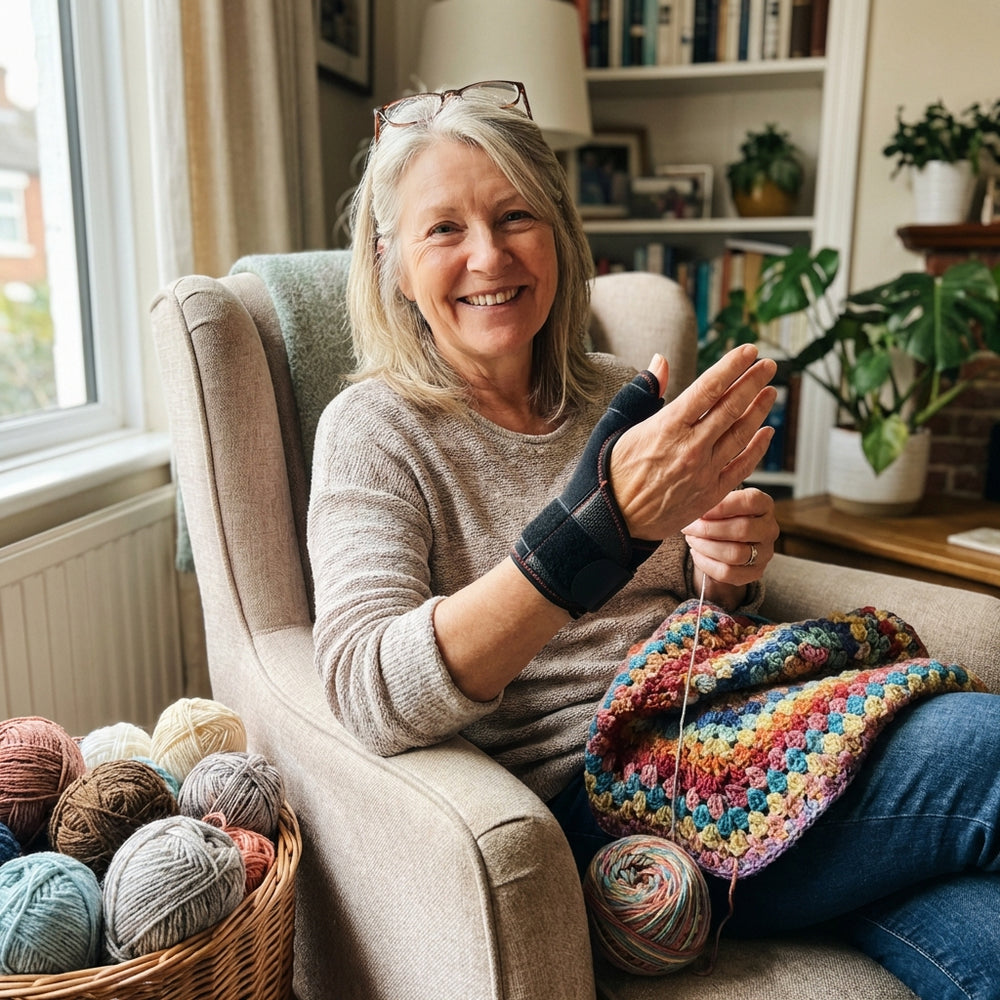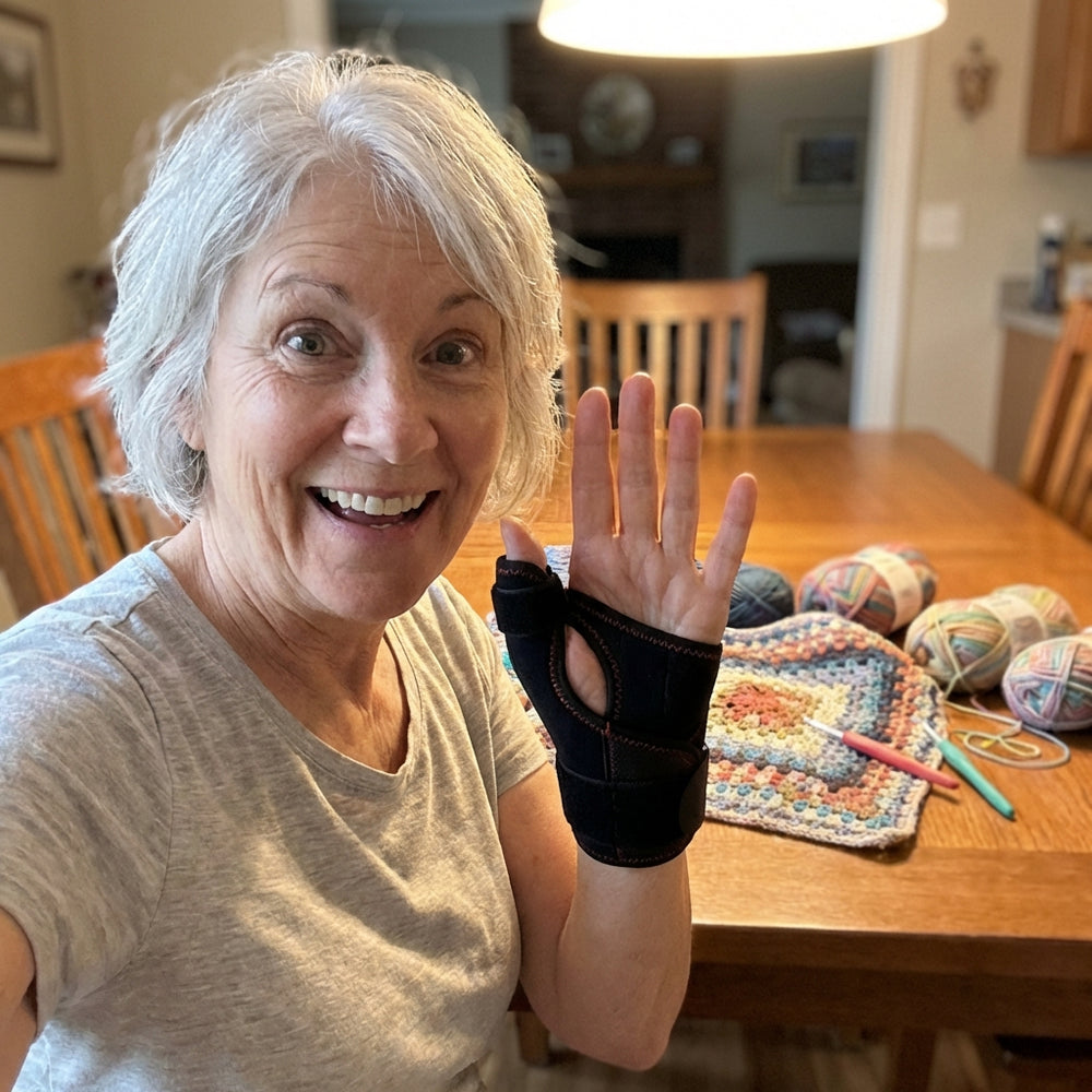 works. The 15-minute session gives your hands forced rest while vibration, heat, and stabilization do their work. Think of it as a warmup before you crochet. Most crafters say it’s become their favorite pre-session ritual.