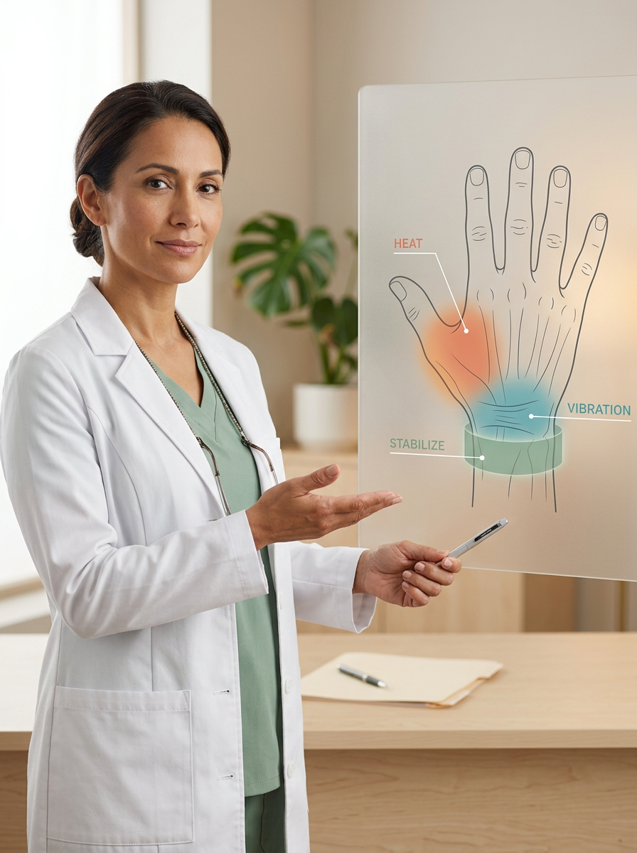 Heat therapy is recommended by the Arthritis Foundation for improving mobility and comfort before activity. Gentle, sustained warmth dilates blood vessels near tendons, restoring the circulation your hands need to flush inflammatory buildup.